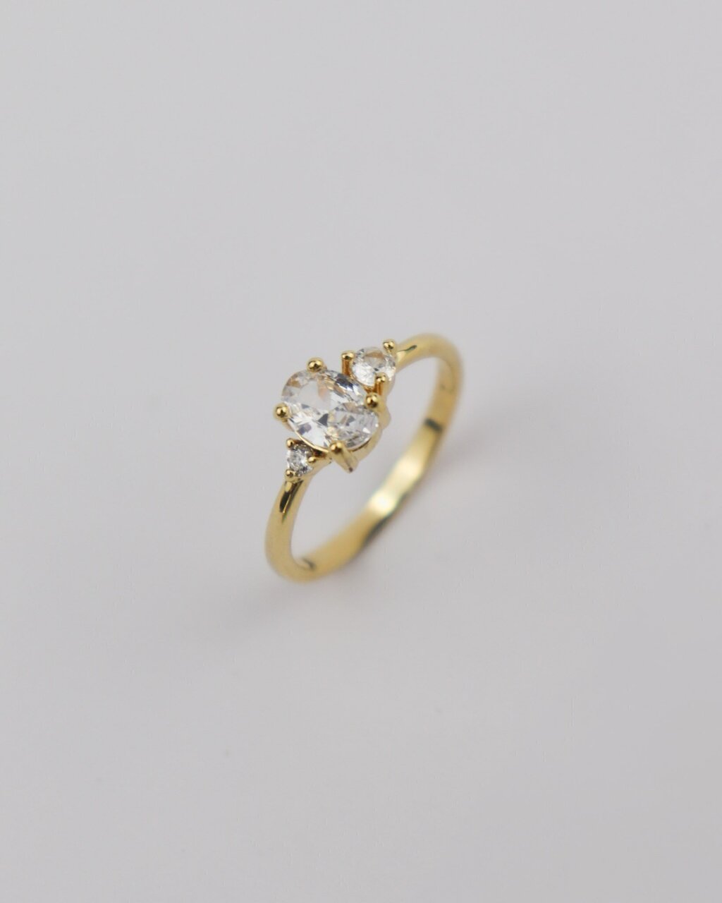 O Anel Solitário Mia é aquele clássico que nunca sai de moda. Com uma zircônia de 11mm em destaque, ele tem brilho na medida certa para ser usado tanto no dia a dia quanto em ocasiões especiais. A base delicada, com apenas 2mm de espessura, traz também duas zircônias menores, em tamanhos diferentes, que dão ainda mais evidência à pedra principal, criando um contraste sofisticado e atemporal.