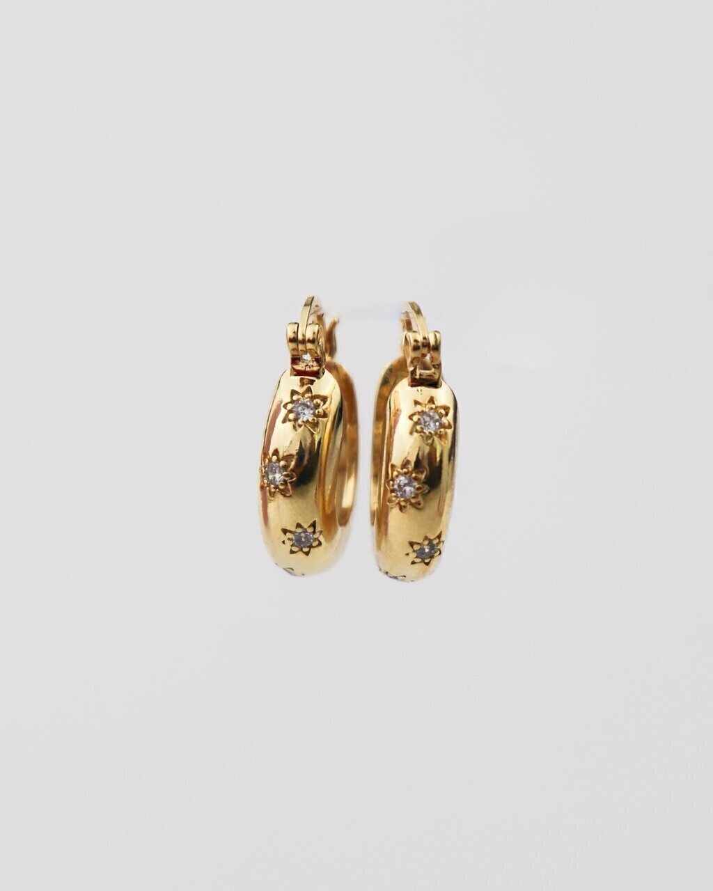 O Brinco Argola Emily é aquele detalhe que faz toda a diferença no look. Cravejada com zircônias, traz um toque de luz sutil e cheio de estilo. Versátil e moderno, combina com quem gosta de acessórios que falam por si só, sem esforço.